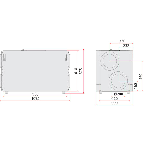 - Höger-/vänsterutförande, dörrar på båda sidor